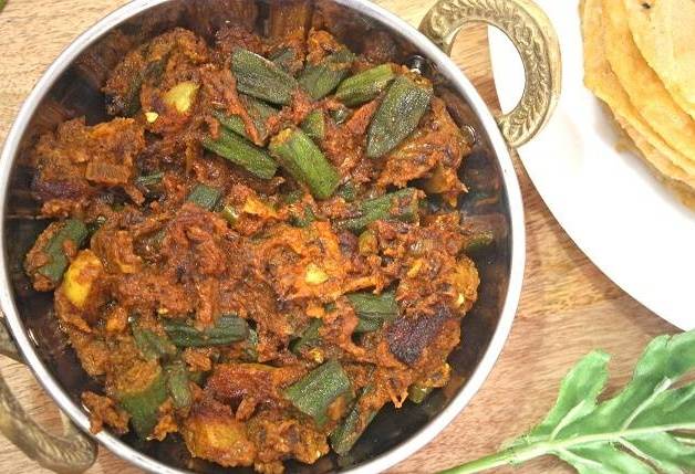 Aalu bhindi recipe is a lightly spiced delicious dry curry made with okra, potatoes, and spices in an onion-tomato base