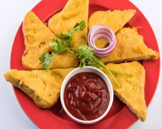 Bread pakora is an Indian fried snack. A common street food, it is made from bread slices, gram flour, and spices among other ingredients.
