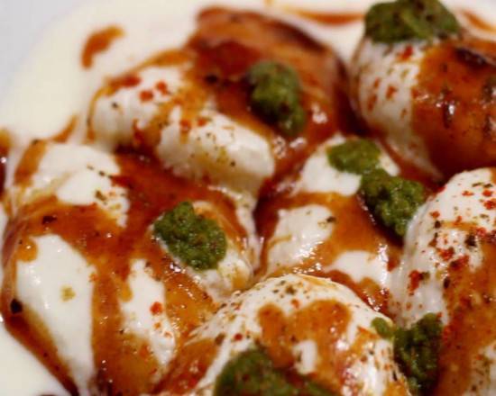 An Indian dish consisting of balls made from ground lentils, which are deep-fried and served in a yogurt sauce.