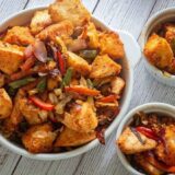 Rajasthani Mirchi Vada is a very famous street food of Rajasthan, which was originated from the city of Jodhpur. Thus, they are also known as Jodhpuri Mirchi Vada. They are chili peppers stuffed with spicy potato filling and then dipped in gram flour batter and deep-fried. Their hot flavors and extremely piquant taste is simply out of this world.
