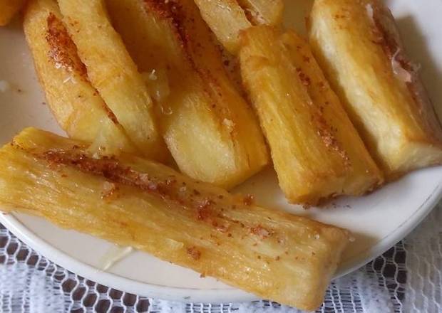 Crispy mogo with a black pepper coating. Simply steam, fry and coat with spices.