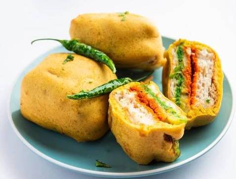 This is Nashik’s famous Pav Vada (also known as Ulta vada Pav) made from bread and spicy potato stuffing